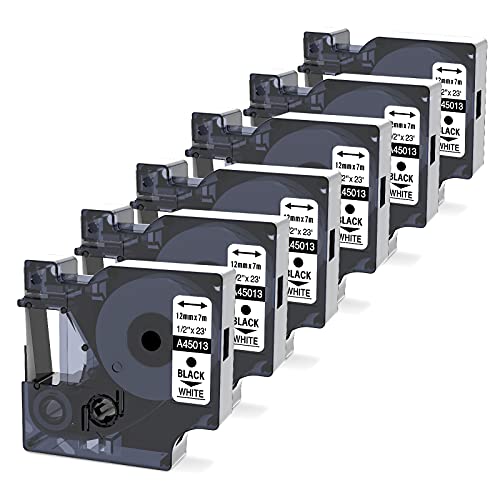 6 x compatibile nastro per etichette per Dymo D1 45013 A45013 S0720530. Colore: Nero su Bianco. Dimensioni: 12mm x 7m