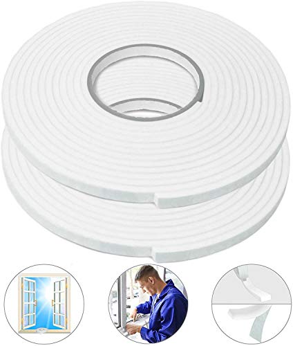 2 x nastro di guarnizione per porte e finestre in gomma autoadesiva per finestre contro il corrente, contro il rumore, resistente alle alte temperature, antimuffa, 9 mm, 11 m, bianco