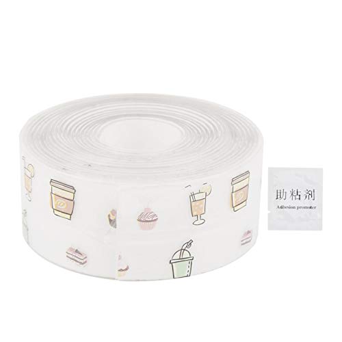 3,8 cm x 3,2 m Nastro impermeabile per bagno da cucina in PVC piuttosto elegante, pratico nastro adesivo sigillante a prova di muffa per lavello da cucina Vasca da bagno(Transparent Coffee Dessert)