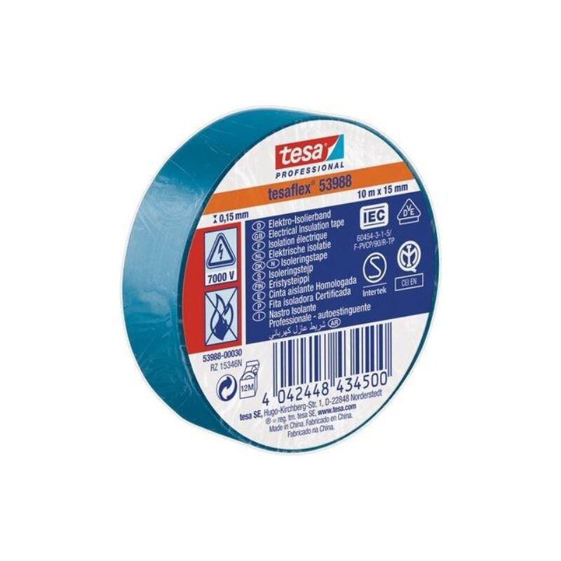Nastro pvc isolante imq tesa (20 pezzi) Azzurro mm 15 ml 10 in pvc morbido, certificato secondo la norma iec 60454-3-1 / 5. da mm. 0,13 di spessore. elevata tensione di rottura dielettrica (volt 7.000). resistente al calore fino a +90° c.