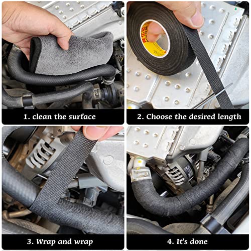 【Qualità Premium】 Il nastro del cablaggio dell'auto è realizzato in tessuto di poliestere di alta qualità con un forte adesivo acrilico. È resistente all'olio, al calore, alla corrosione e all'usura e ha anche un'eccellente resistenza alle macchie e all'invecchiamento;