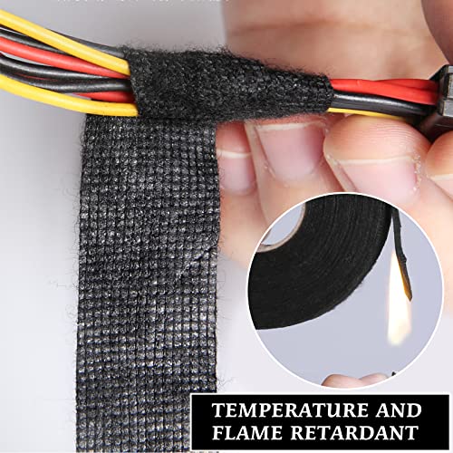Nastro Isolante in Tessuto Industriale Cablato Resistente al Calore, Nastro Elettrico per Cablaggi in Temperatura, Avvolgimento Isolamento per Moto Automobile e Casa 2PCS, Nero