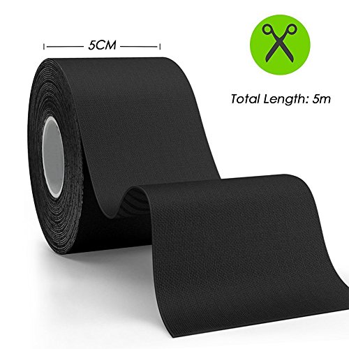 Nastro Kinesiologico per il Ginocchio, Spalla, Gomito, Polso, Medical, 5cm x 5m, 2 Rotoli, Nero