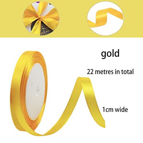 Nastro di Raso,10mm x 23 Metri Nastro D'Oro Satinato per Artigianato Natale Decorazioni, Adatto per Confezionare Regali, Feste di Compleanno, Matrimoni, Abbellire e Tanti Altri