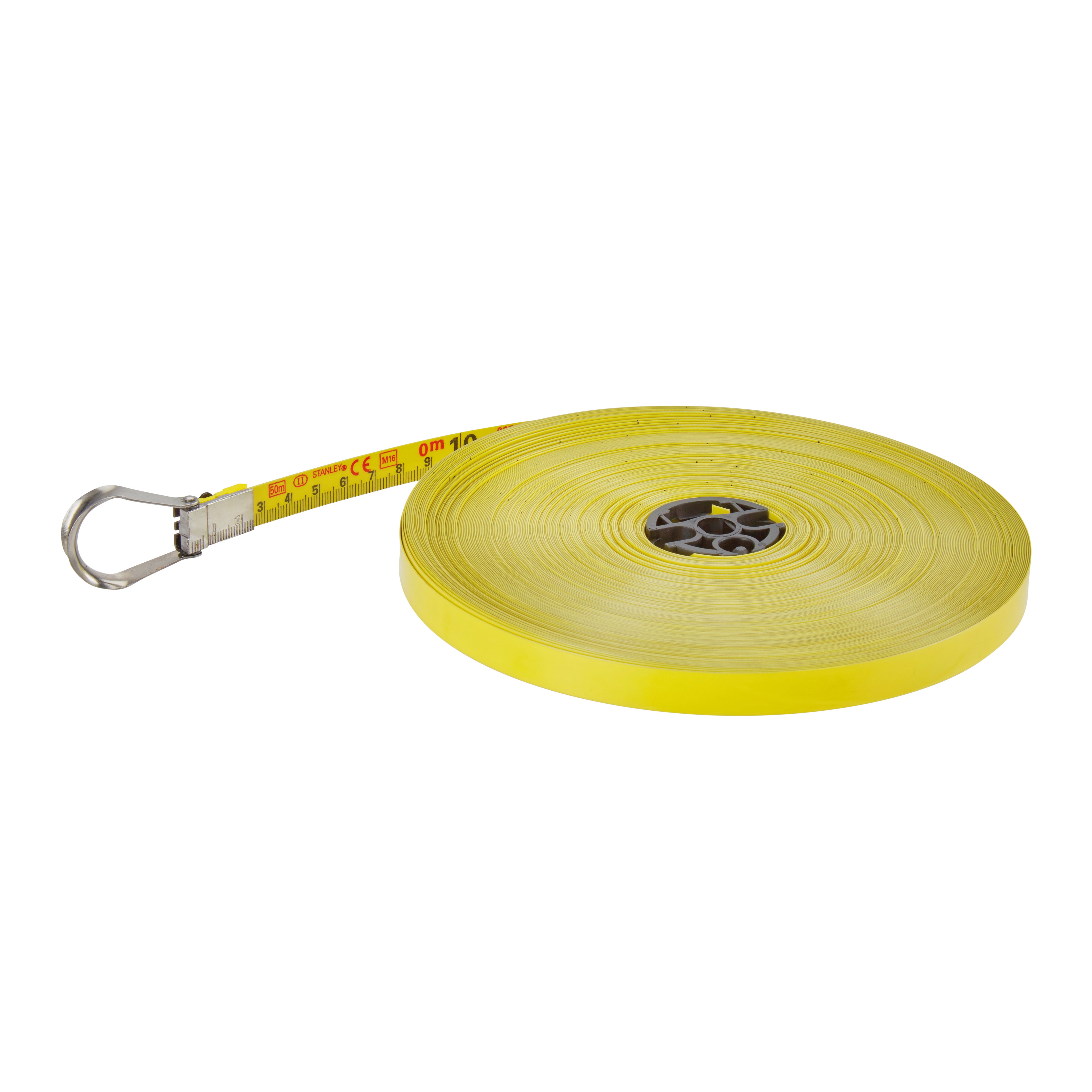 Nastro metrico in acciaio, lunghezza 50 m, larghezza 12.7 mm. Nastro in acciaio al carbonio protetto da rivestimento in Mabolon che assicura grande resistenza all'abrasione, all'aggressione da parte di sostanze chimiche e limita il rischio di rotture in caso di piegamento