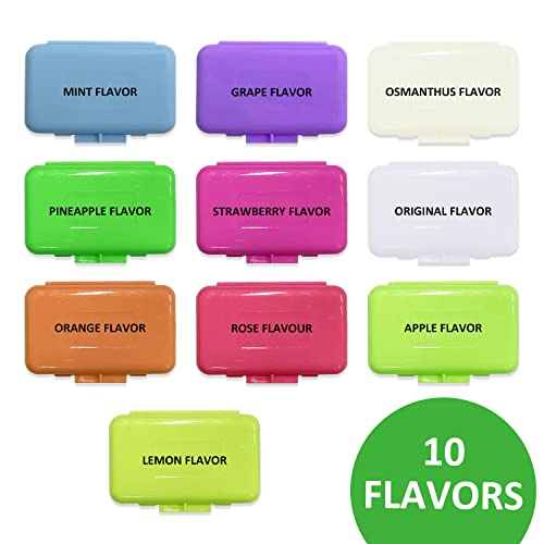 【Pacchetto incluso】 Riceverai 10 pezzi di cera ortodontica, inclusi 10 gusti: menta, originale, arancia, uva, osmanto, originale, rosa, ananas, mela, limone e 2 parentesi graffe originali da masticare, sufficienti per soddisfare il tuo utilizzo e sostituzione necessità.