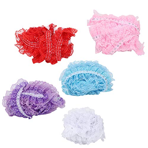 Caratteristiche: questo nastro adotta un nastro in pizzo di alta qualità, finiture in pizzo pieghettato, design a punti di stampa, decorato con paillettes, bello e brillante. Una necessità per i lavori artigianali di ricamo fai da te.