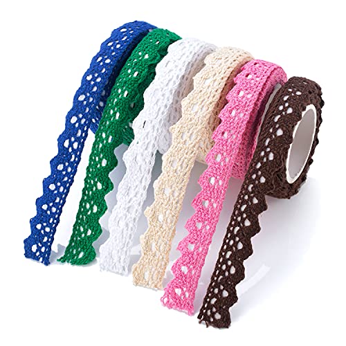 6 rotoli di nastro in pizzo autoadesivo. Colore: beige, bianco, rosso, blu, verde e marrone, 6 colori, uno per ogni colore.