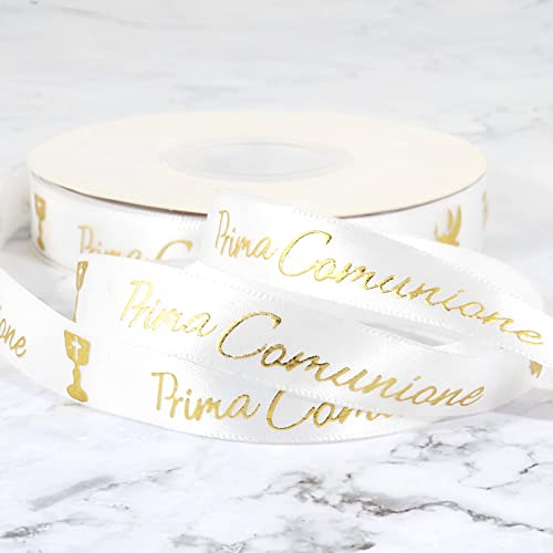 [Design classico]: L'elegante design a tema Prima Comunione in oro è il più ricercato per l'occasione, Il nastro è dotato di scritta dorata “Prima Comunione”, molto ideale per decorare le bomboniere, regalo, scatole, cartoline, biglietti d'auguri della prima comunione.