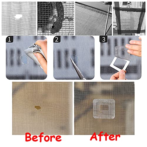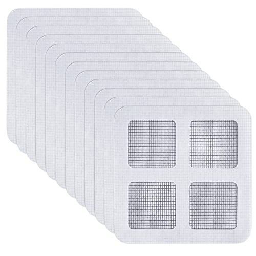 Contenuto della confezione: riceverete 12 fogli di kit di riparazione per zanzariera, dimensioni: 10 x 10 cm, peso: 20 g. Adatto per molte forme o dimensioni di fori, abbastanza per l'uso quotidiano.