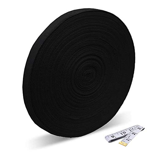 Nastro sbieco a spina di pesce in cotone, per bandierine, per grembiule, fettuccia in twill per cucito, sartoria, modifiche, fai da te, progetti artigianali, 45,7 m, 12 mm, Nero, taglia unica