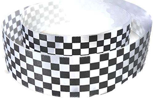 Nastro a scacchi bianco e nero, ideale per confezioni regalo e per decorare torte e dolci, lunghezze disponibili 1 m, 3 m, 5 m o 10 m, larghezza 25 mm, 1 m