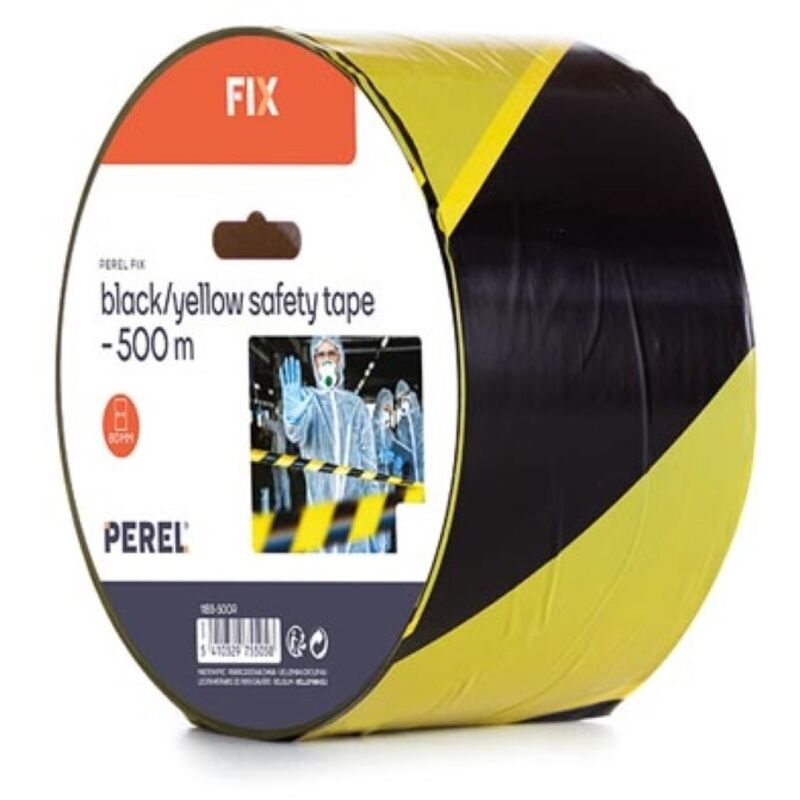 The safety ribbon (or barricade tape) is used in dangerous places, construction sites, temporary demarcation, crowd management, ... The tape is wrapped on a carton reel. Informazioni sul prodotto Primärfarben Schwarz, Gelb,Gewicht Produkt 1300 g,Material PE (Polyethylen) Proprietà fisiche Länge Band 500 m,Breite des Bandes 80 mm,Spender Nein,Dicke Band 28 µm Dimensioni dell'imballaggio 1