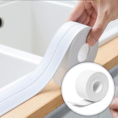 Nastro sigillante autoadesivo, impermeabile, con strumento di guarnizione, sigillante antimuffa, utilizzato in cucina, bagno (bianco, 3,8 cm x 3,2 m)