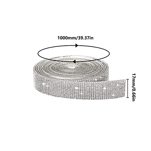 Nastro con strass, 8 file, 91,44 cm, autoadesivo, color argento, con strass scintillanti, per matrimoni, fai da te, auto, telefoni cellulari, progetti artigianali