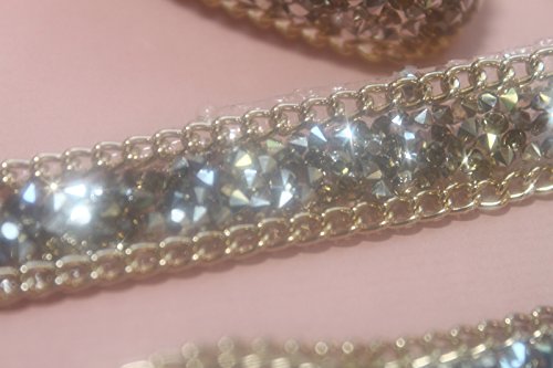 Nastro 40 cm Strass Silver e catena Gold 15 mm Hotfix thermocollant Bling Custom