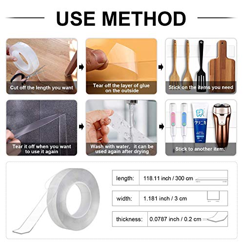 Nano Nastro Trasparente, Terra Tu Nastro Adesivo Carta Adesivo Antiscivolo in Gel Riutilizzabile con Colla Rigida, 3M