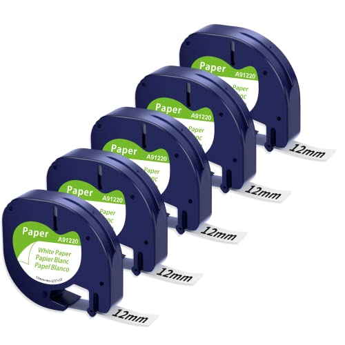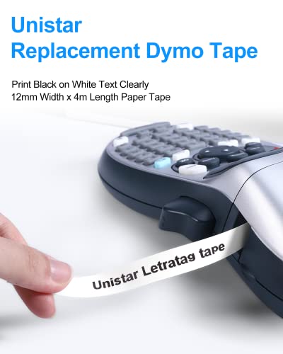 Nastro Unistar Compatibile In sostituzione di Dymo LetraTag Etichette Paper White 91200 S0721510 12mm x 4m Nastro per Dymo Letratag Etichettatrice LT-100H LT-100T LT-110T QX 50 XR XM, 5-Pack