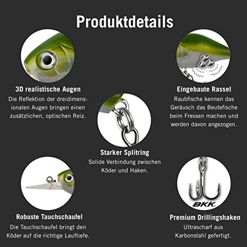 Nasty Bait Slinky | Crankbait | Wobbler I Esca da pesca | Lunghezza 4,5 cm - 1,77" | Peso 8 g | Occhi 3D | BKK Premium | Modello attivo UV | Galleggiante | per pesce persico, luccio e luccioperca