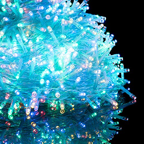 Nataland Catena Luminosa 1000 Led - 55 Metri Da Interno Ed Esterno, Serie Trasparente Con Controller 8 Funzioni, Per Illuminazione Casa, Vetrine e Albero di Natale (Multicolor, 1000 Led - 55 Metri)
