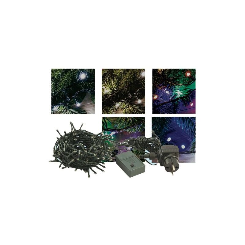 Luci Led natale per esterno Luci 24V-50Hz. Trasformatore elettronico con controller integrato 8 giochi luce, cavo alimentazione 5 mt. Norme CE 100 Led - Bianco Caldo - cavo luci 4,5 mt.