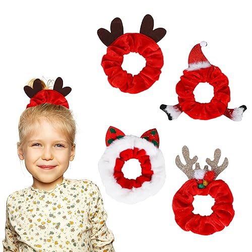 4Pcs Natale capelli Scrunchies Legami di corna per capelli corde elastiche per capelli bande carino rosso Natale accessori per capelli per le donne ragazze