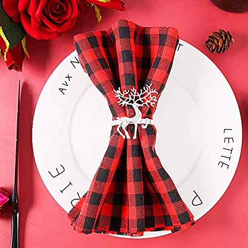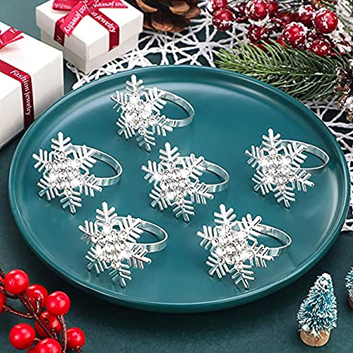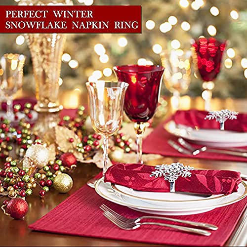 Natale Cervo Alce Fiocco di Neve Anelli portatovagliolo,Argento Anelli tovaglioloi Fibbia per Ringraziamento Natale Capodanno (Renna e Fiocco di Neve, 12 PZ)