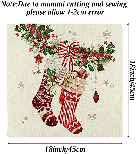 WHTY Natale Federe Cuscini 45x45 cm babbo Natale Cotone Lino Dell'albero di Natale Cotone Biancheria Decorativo Gettare Caso Federa per Sofà Interni ed Esterni Set di 4