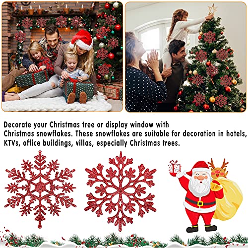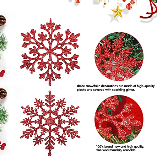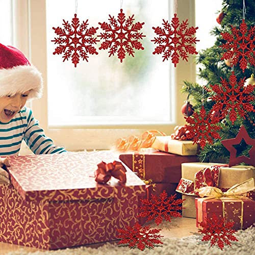 Natale Fiocchi Neve Decorazioni, Fiocchi Neve Natale Pendenti, Plastica Fiocchi di Neve Decorativi con Corda, Fiocco di Neve di Glitter Ornamenti per Decorazione Natale Fai da Te (Rosso E)