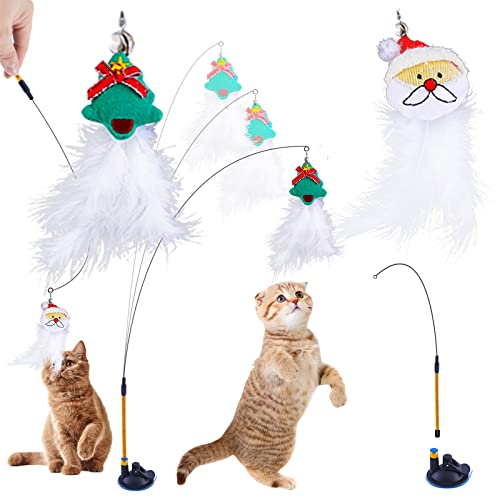 Natale Giochi per Gatti,Giochi con Piume per Gatto,Giocattoli Interattivo per Gatti,Giochi per Gatti in Casa,Gioco Per Gatti Per Con Campanelli e Giochini Con Piume