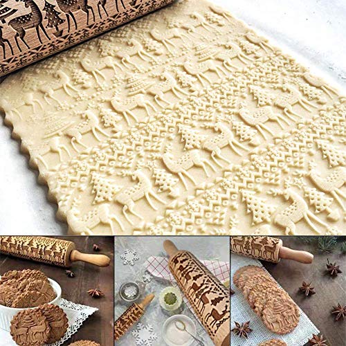 Natale Goffratura Mattarello,Mattarello In Legno Rolling Pin per Biscotti e pizza Utensile da Cucina in Rilievo di Legno Inciso a Forma di mattarello Inciso di Natale, Mattarello di Pane di Pasta