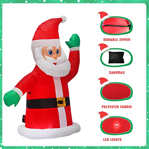 LUCE LUMINOSA E OCCASIONI: questa decorazione gonfiabile di Babbo Natale, luce LED accattivante e luminosa incorporata, adatta per la decorazione di strade quadrate da giardino all'aperto. Rendi il giardino di casa pieno di un'atmosfera festosa e felice alla vigilia di Natale.