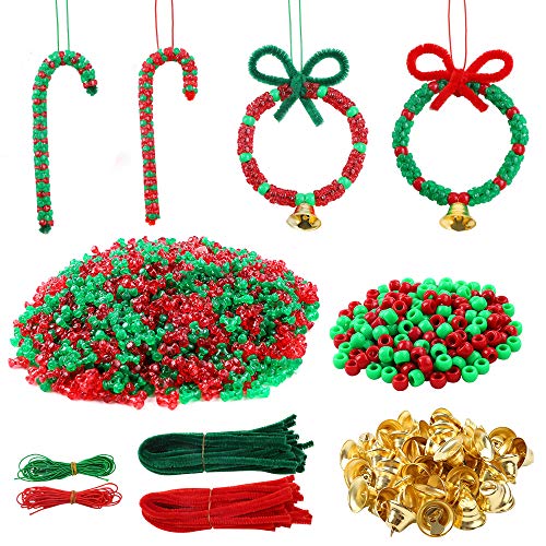Natale Perline fai da te per bambini Set 1300 pezzi di Tri perline di plastica e 10 m verde rosso per decorazioni natalizie ornamenti di perline Decorazioni per alberi Articoli per feste fai da te