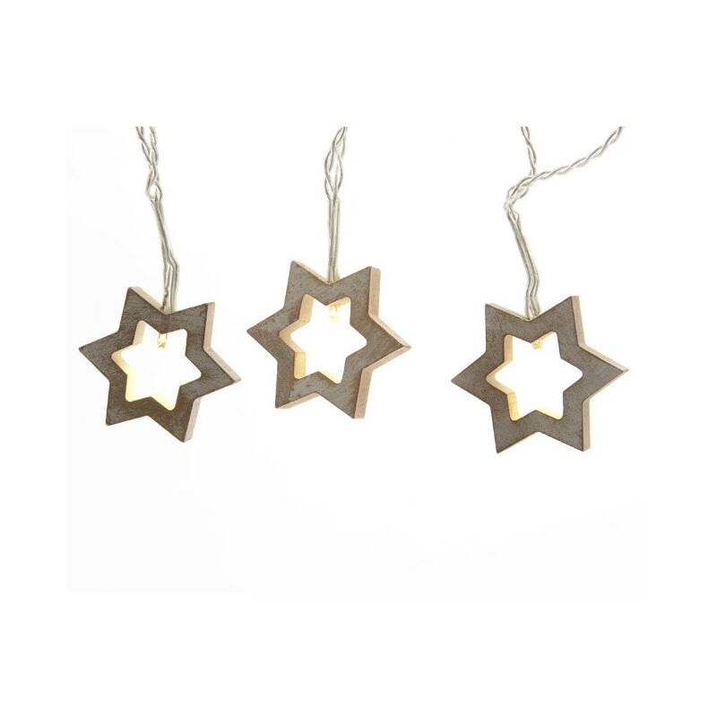12 Luci di Natale Led con Stelle in Legno Altre informazioni: Numero LED: 12 Dimensioni: 2,4 m Colore: bianco caldo