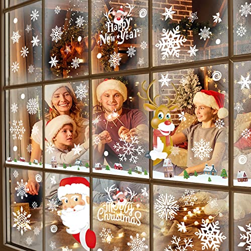 [Dimensioni adesivi] 8 adesivi decorativi natalizi 22 x 29,5 cm, ci sono 8 fogli di adesivi per finestre di Natale nella confezione, includono fiocchi di neve dal design originale e unico, Babbo Natale, pupazzo di neve, renna.