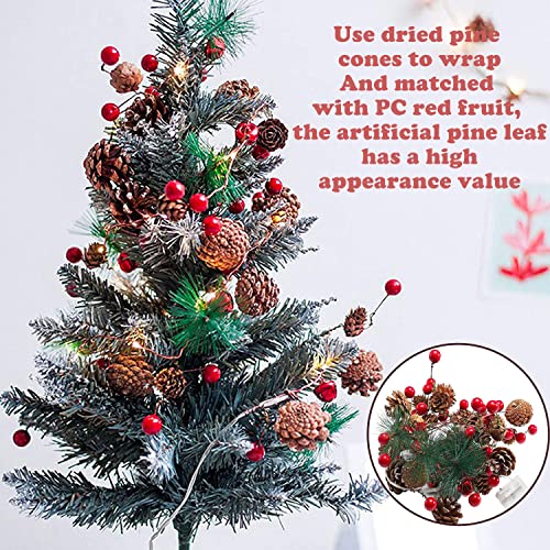 Luci natalizie con bacche rosse-20LED Luci di stringa di Natale con pigna - pigne e aghi di abete verde immerabile-per la casa, la decorazione di Natale, per interni ed esterni