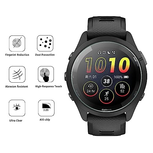 【Alta chiarezza e alta sensibilità al tatto】: questa pellicola protettiva in vetro temperato per Garmin Forerunner 265 è dura ma ultra sottile, lo spessore è di soli 0,33mm per non sentire nulla sullo schermo. Il vetro ad alta definizione al 99,99% e il rivestimento idrorepellente e oleorepellente protegge da sudore e residui di olio dalle impronte digitali. Permette anche il tocco e questo fornisce una grande sensibilità per risposte rapide e un tocco preciso al 100% dello schermo.