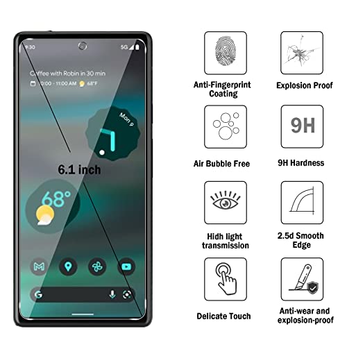 Natbok 3 Pezzi Vetro Temperato per Google Pixel 6A Pellicola Prottetiva,Anti Graffio,Durezza 9H,0,33mm Trasparente,Senza Bolle, Anti-Impronte Film per Google Pixel 6A,Facile da Installare