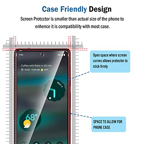 【Nota speciale】: a causa del bordo rotondo di Google Pixel 6A, la nostra vetro temperatoper Google Pixel 6A è leggermente più piccola dello schermo, consente al telefono di adattarsi alla maggior parte delle custodie sul mercato e previene bolle e sbucciature intorno ai bordi. Inoltre, contribuirà a rendere l'installazione super facile, una volta installata, l'aria verrà assorbita automaticamente, senza produrre alcun alone bianco, senza colla o bolle.