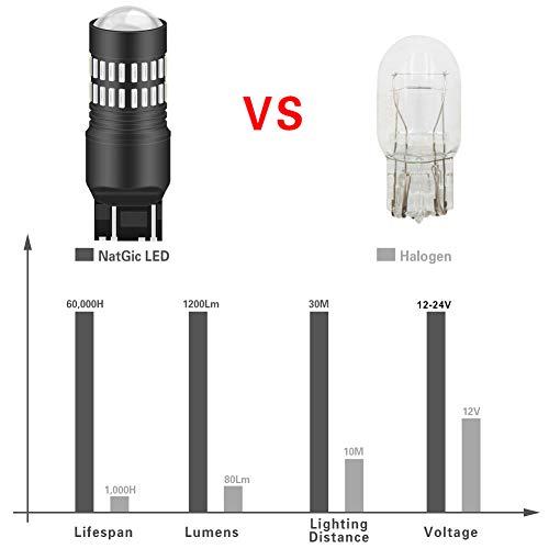 NATGIC 7443 T20 7440 7440NA 7441 992 Lampadine a LED Rosso 2400LM 48-SMD 4014 Chipset LED con proiettore per stop Coda del freno Indicatore laterale Parcheggio Stop Back Up Light (confezione da 2)