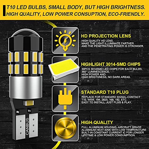 ★ 【Applicazione Lampadine a LED T10】-- Utilizzato per luci della targa, luci di cortesia per porte laterali, luci per mappe interne, luci di lettura, luci di cortesia, luci di posizione, luci della città, luci del carico, luci di posizione laterali, luci d'angolo, luci del tronco ecc. la maggior parte dei veicoli, solo Plug & Play per la sostituzione della lampada alogena.