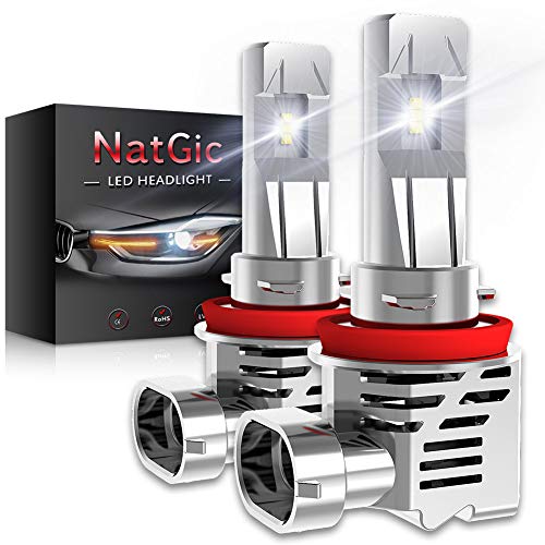 NATGIC H8 H11 H9 Lampadine per Fari a LED Kit di Conversione Lampadine per Fari Alogeni Sostituzione Fari 55W Chip ZES a Doppia Faccia 10000LM e 6500K Xenon Bianco DC 9V - 32V (Confezione da 2)