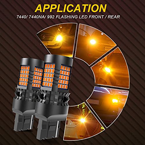 ❉ 【Applicazione della Lampadina a LED Ambra 7440】-- Adatto per presa 7440, W21W T20, 7440LL, 7440NA, 7441, 992. Sostituisci per indicatori di direzione anteriori o posteriori dell'auto, luce lampeggiante, luce di posizione laterale. Facile installazione, plug and play!