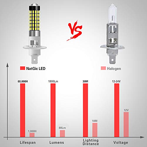NATGIC Lampadine H1 LED Xenon White 1800LM 3014SMD Chipset 78-EX con obiettivo Proiettore per luce di marcia diurna Luce per guida automobilistica, 6500K, 12-24V (2-Pack)