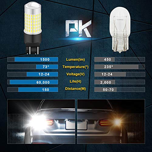 NATGIC 7443 7440 T20 Lampadine a LED Xenon White 3000LM 3014SMD 144-EX Chipset con proiettore dell'obiettivo per luci di retromarcia Posteriori del Freno retromarcia, 12-24 V (2 pacchi)