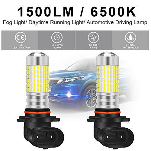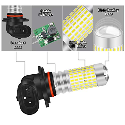 NATGIC 9006 HB4 LED Fog Light Bulbs Xenon White 3000LM 3014 SMD 144-EX Chipsets with Lens Projector for Auto Exterior Fog Lamp Fog Light, 12-24V (2-Pack)