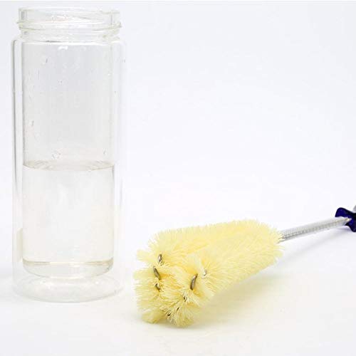 NATIOANALMATER - Spazzola per Bottiglie, Spazzola pulente con lungo manico, Spazzola Flessibile con manico, per caraffa, calici, cisterne, thermos giallo