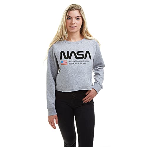 Nasa National Aeronautics Cropped Crew Maglia di Tuta, Grigio Marl, 46 Donna
