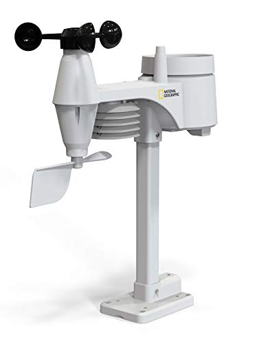 National Geographic - Stazione meteorologica radio con sensore esterno, centralina meteo 5-in-1, schermo per temperatura, umidità, pressione atmosferica, indicatore del vento e pluviometro, nero