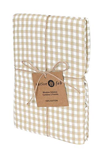 Native Fab Tendine della Finestra Tenda Corta 2 Pannelli W 148 x H 38 cm - 100% Cotone Lavabile Tende a mezza finestra per Cucina Balcone Camera Parete Café- Beige